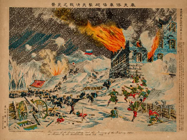 Burning of Railroad Station at Mukden from the series Visual record of the Russo-Japanese War (1904–05)