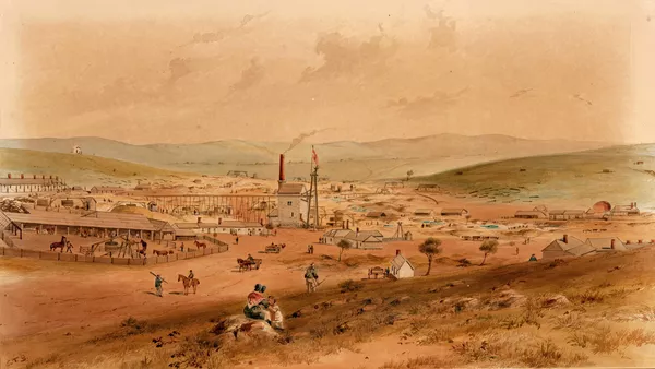 Burra Burra Mine, S.A., showing chief portion of surface operations 1850