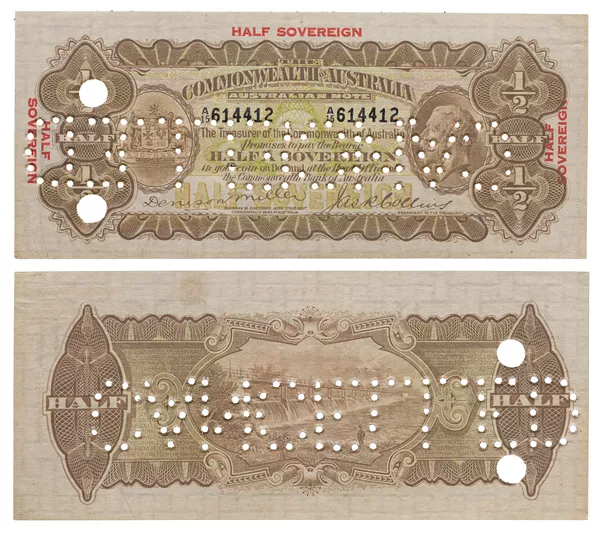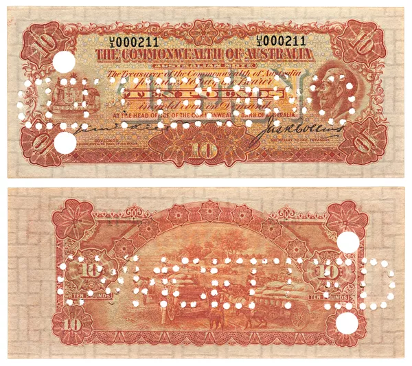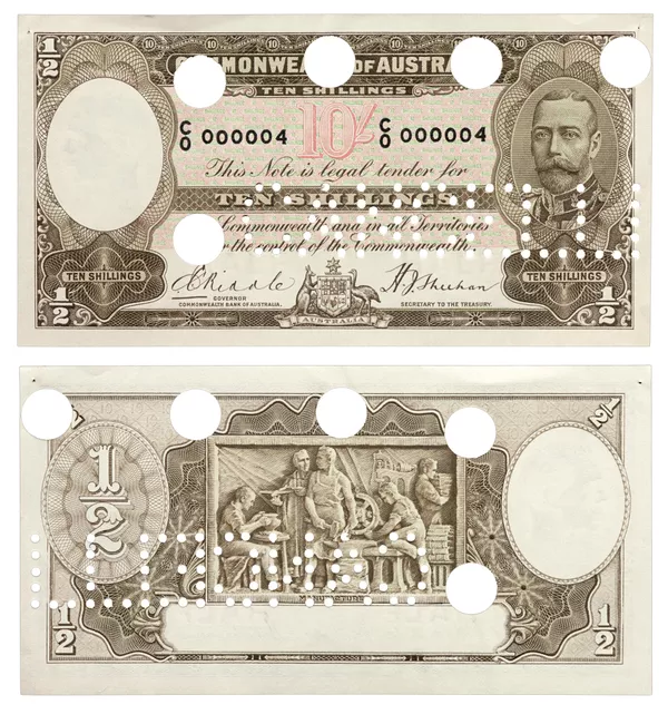 Commonwealth of Australia Riddle & Sheehan cancelled 10 shillings C0 000004