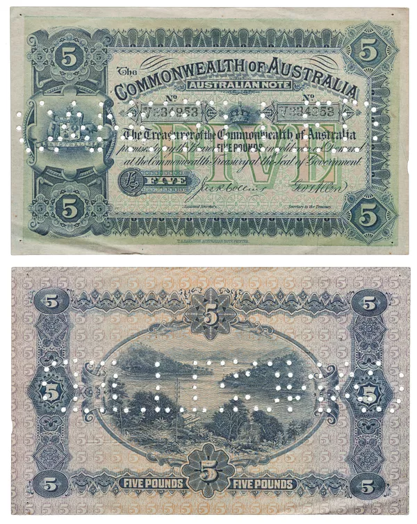 Commonwealth of Australia Collins & Allen cancelled £5 V334953