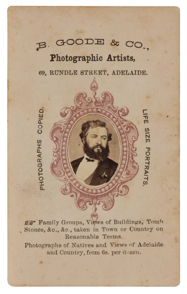 Bernard Goode's advertising carte with 'gem' self-portrait