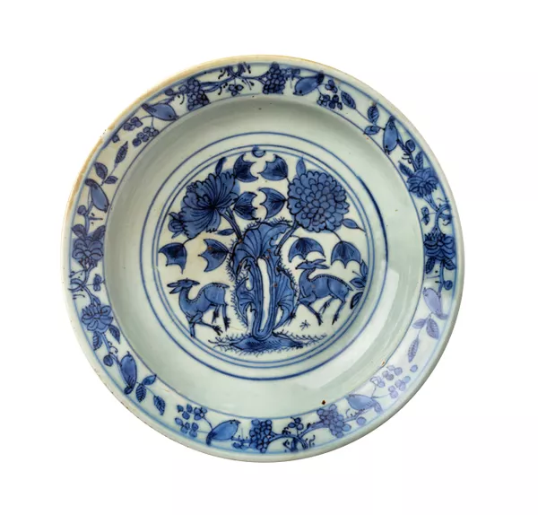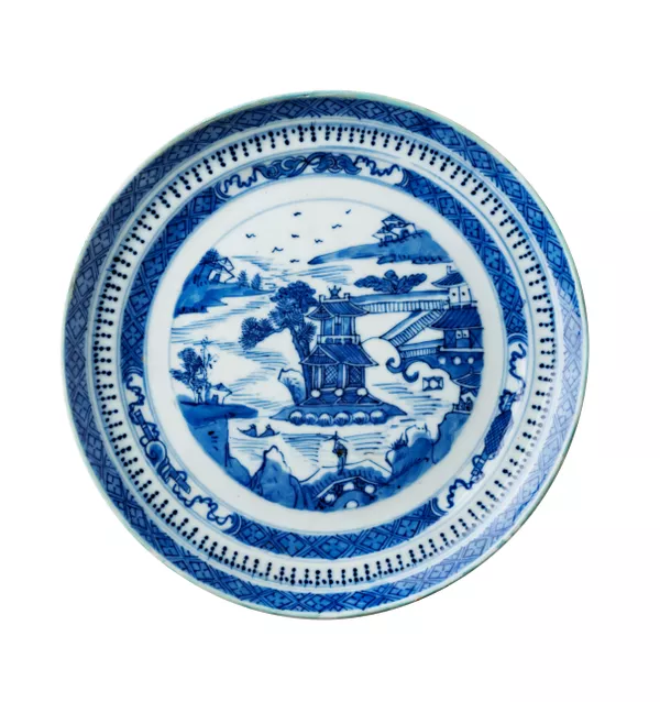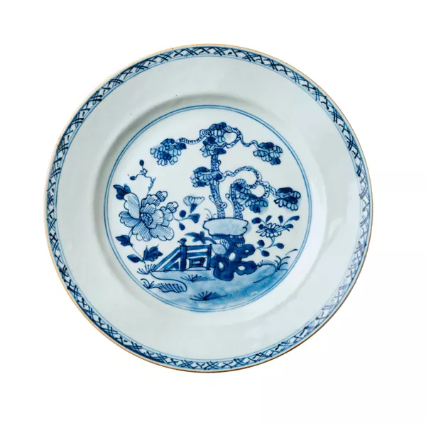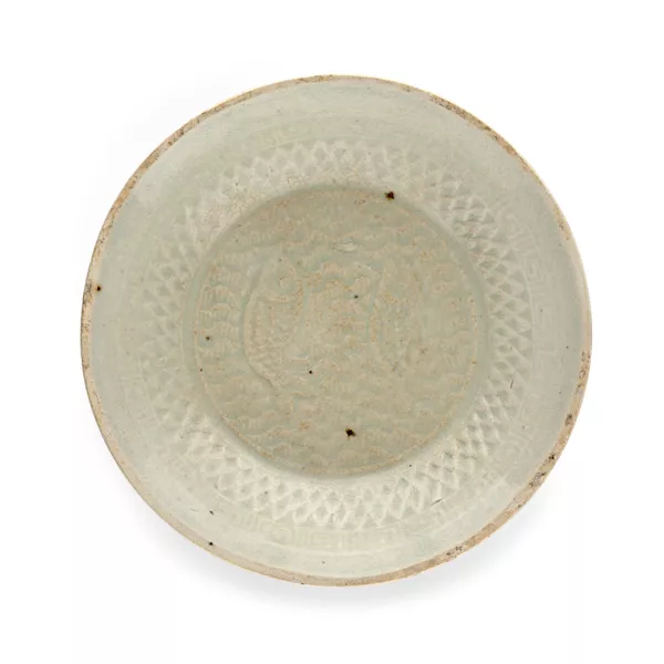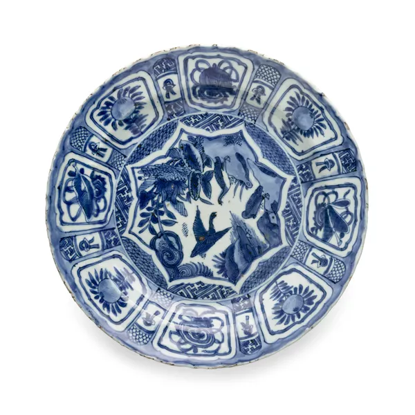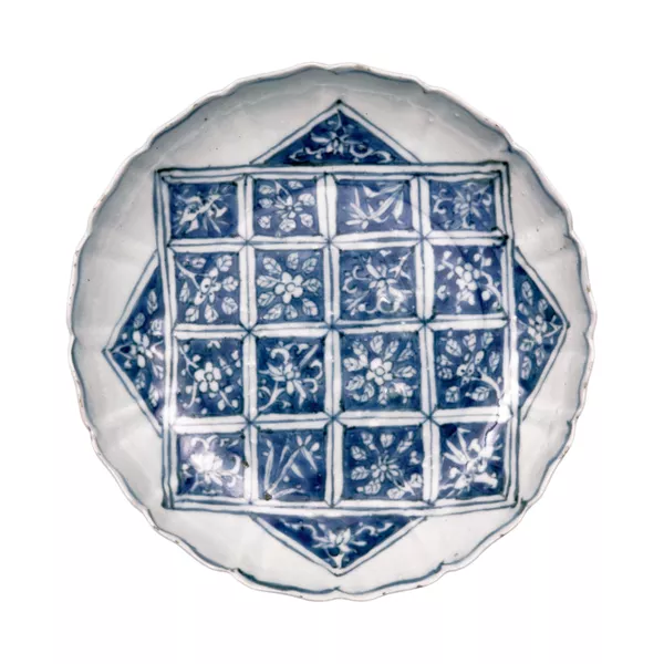 Dish, with 'magic square' containing floral motifs, for the Muslim market