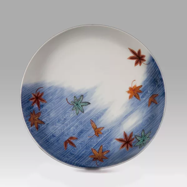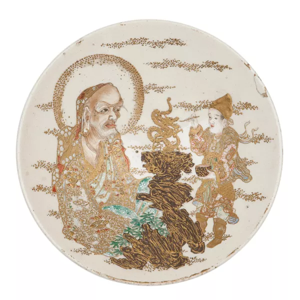 Dish with arhat (rakan), dragon and attendant, Satsuma style