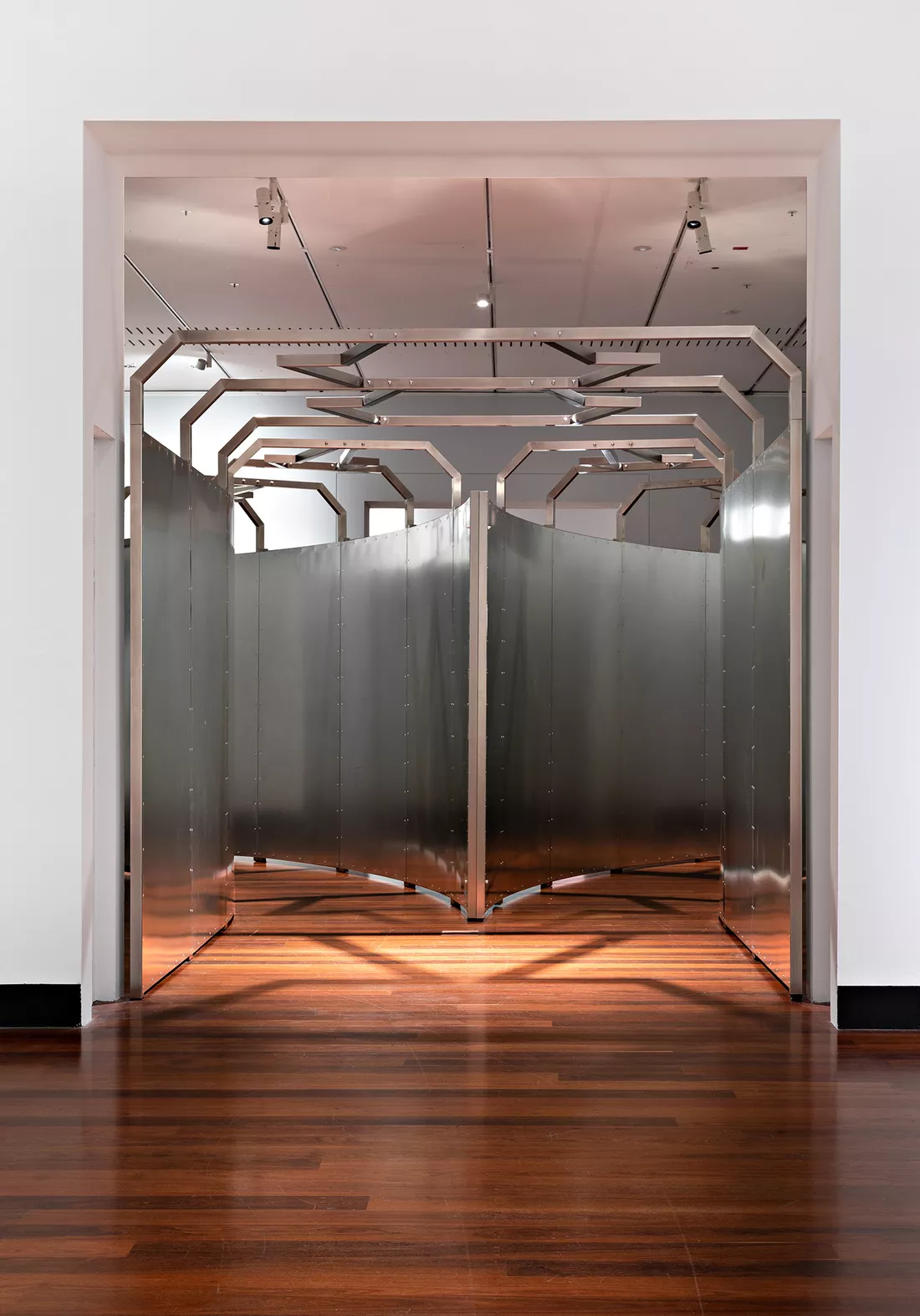 Although these works reference systems designed to contain animals, Mathews ultimately points to the forces that shape human behaviour. Her installations foreground the subtle modes of control embedded within gallery environments—from exhibition design to cultural mediation and security—inviting viewers to reflect on how space directs, manages, and conditions movement.