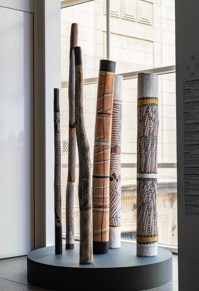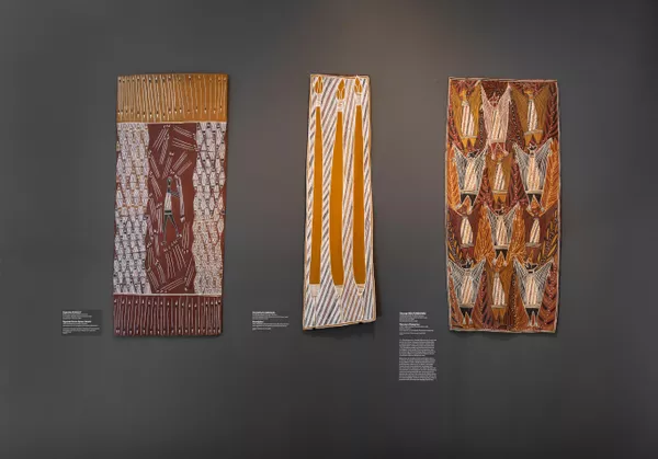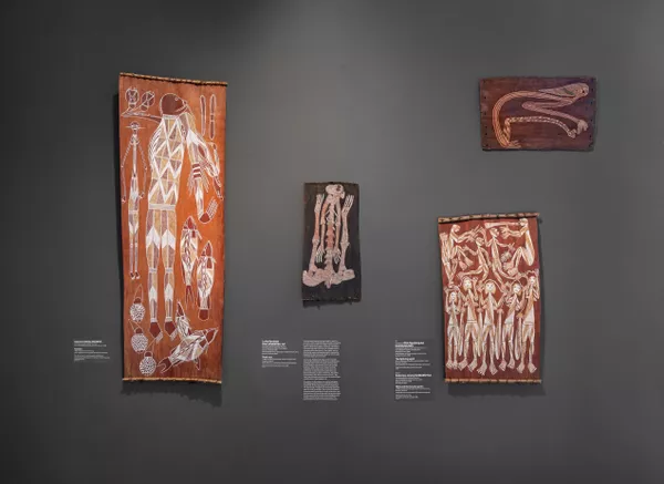 In Arnhem Land, as in many Aboriginal societies, knowledge is shared through the act of making and by passing on important protected cultural stories from one generation to the next. Displayed to reveal specific intergenerational groupings, this exhibition of more than thirty bark paintings and sculptures affirms the continuity of culture across time and place.
