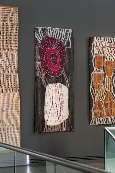 Converging Currents presents key works from the Gallery’s collection by artists from across Arnhem Land – from the stone country of the Bininj Kunwok people in the west to the saltwater homelands of the Yolŋu in the northeast.