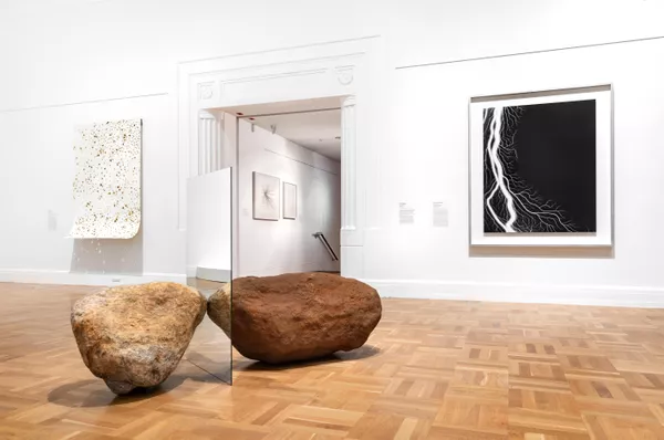 Dark Matter, Bright Light showcases recent acquisitions of contemporary international and Australian works of art alongside iconic works in the collection. Taking its title from Olafur Eliasson’s Dark matter collective, this display brings together artists who often use elemental material such as air, light, fire and stone, or mirrors, lenses and prisms to explore the mechanics of vision, concepts of infinity and the outer edges of perception.