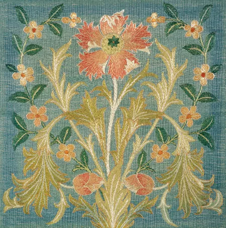 It includes a number of designs by May Morris, daughter of William Morris, who was one of the leading female contributors to the Arts and Crafts Movement. She was an innovative designer of embroidery, wallpaper and jewellery, and ran the embroidery department of Morris & Co. as well as co-founding the Women’s Guild of Arts in 1907.