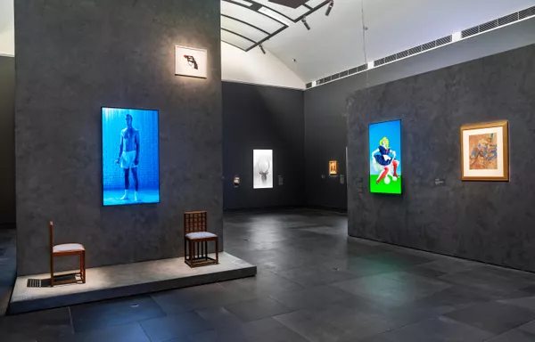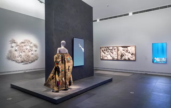 Many of the video portraits refer to pivotal moments in art history and have been created through collaborations with renowned contemporary performers and artists such as Lady Gaga, Isabella Rossellini, Brad Pitt, Zhang Huan and Robert Downey Jr. Each work is captured in high-definition video and displayed on large monitors to create an arresting ensemble of characters and moods.