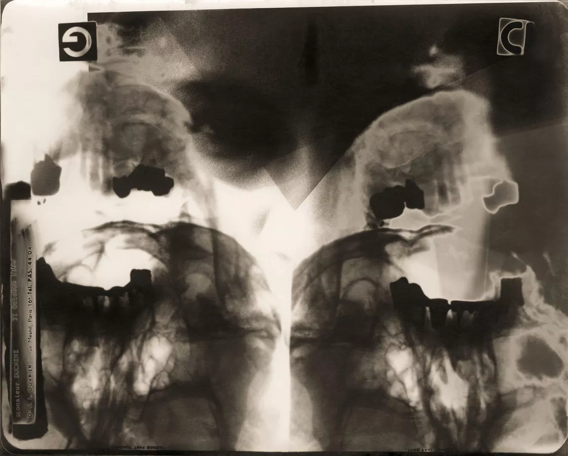 The monochrome works Mushroom Cloud, 1970/2018, and Damages Survivors, 1970/2018, reflect on the anti-nuclear sentiment and the controversial Vietnam War (1955–75), which was raging at the time of their making. Malani produced these photographs using collage processes at the photo club at the Cité Internationale Universitaire de Paris in 1970 when she was undertaking a French academic scholarship. She used an Asahi Pentax SLR camera to take her own images, which she then superimposed with X-rays from a local hospital.