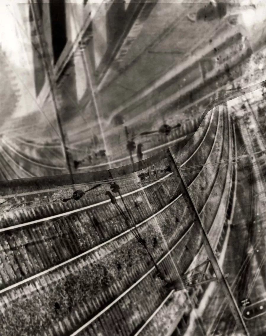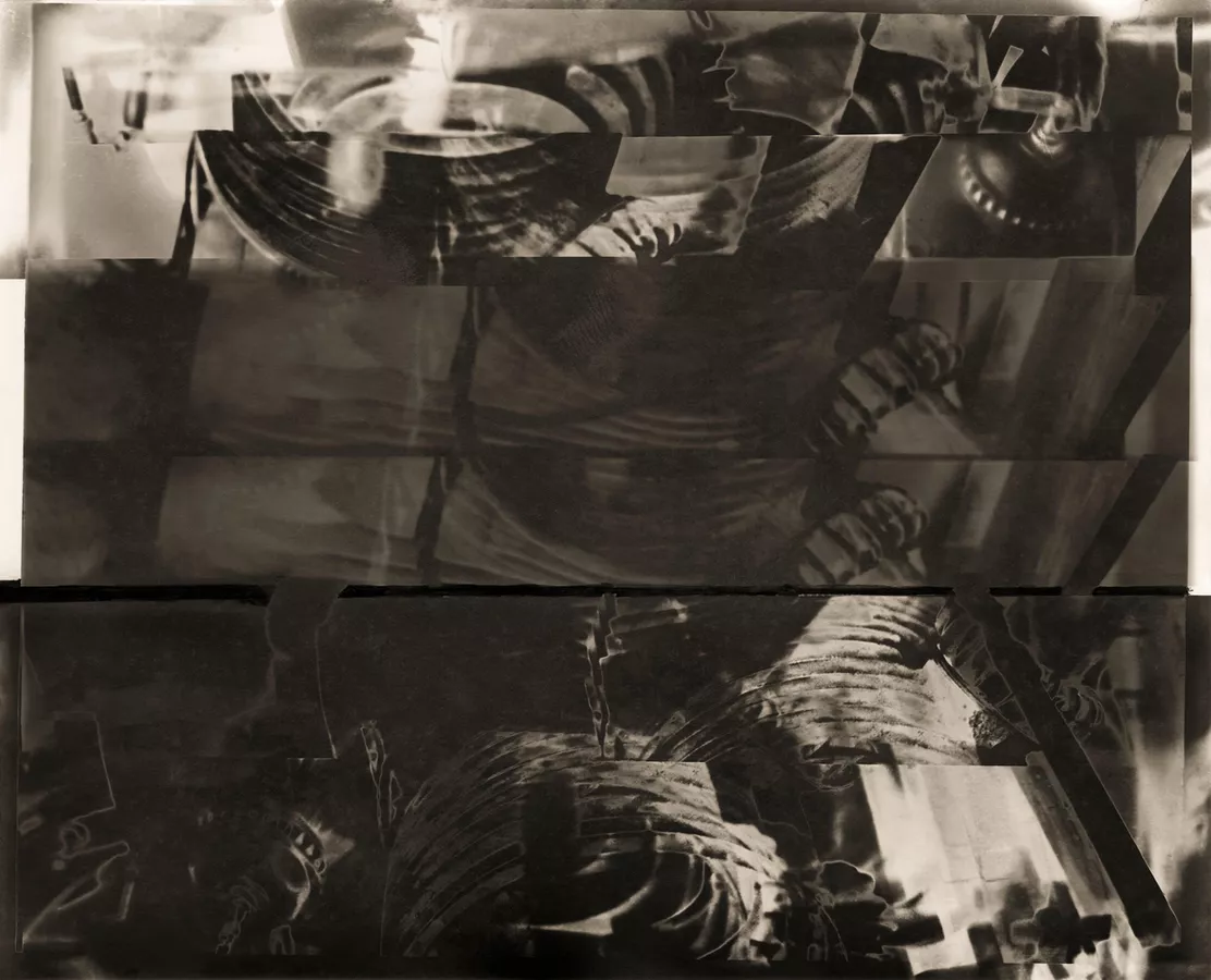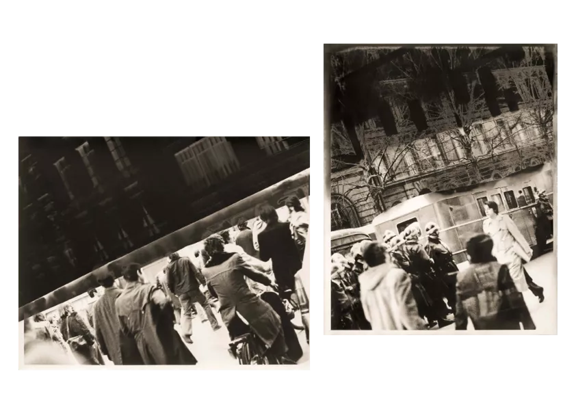 She soon began making photographic collages at the photo club of the Cité Internationale Universitaire. The solarised photographs Intestines of the Machine Age and Le Chemin de Fer, made in 1970, reflect the political turmoil of the time.