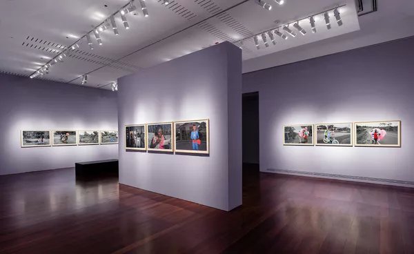 The title of this series was inspired by the classic children’s novel Alice’s Adventures in Wonderland by Lewis Carroll. Themes of youth, playfulness and childhood memories are evident in Hobson’s photographs. The brightly coloured figures and their props lure the viewer into a dream-like reality, much like how Alice follows the white rabbit.
