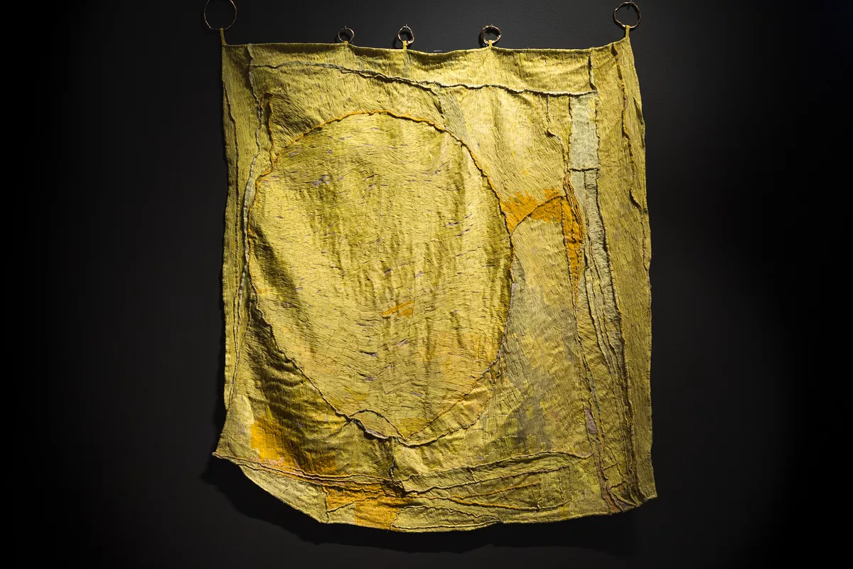 In The Persistent Yellowing (time piece), Teelah George employs embroidery and bronze to consider time, materiality and the inevitable entropy of all things. ‘Yellowing’ refers to the colour yellow...