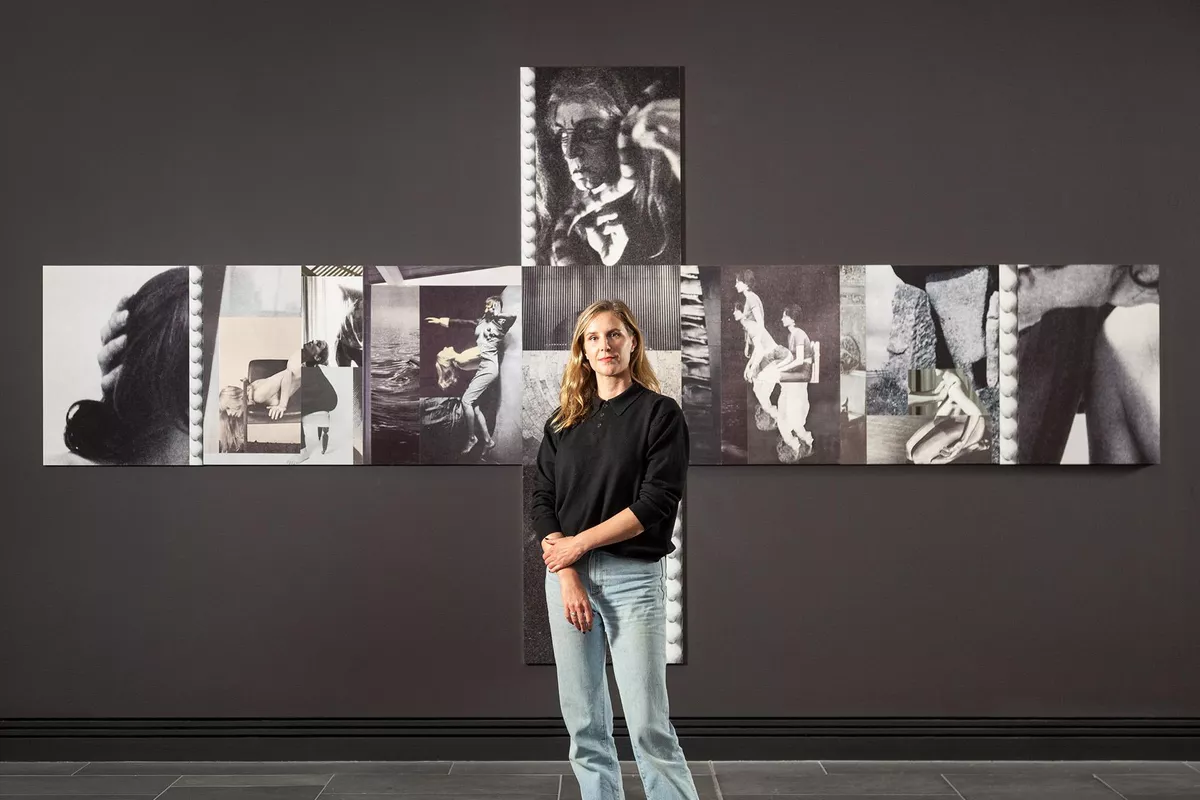The Perth-born, Sydney-based artist explores themes of queer intimacy and desire in their winning work. Heavy Grit was developed in response to a collection of scrapbooks held by the Australian Queer Archives. Ball’s work reveals fragments and glimpses of queer histories, layering archival materials with personal images and soft form sculptures, and creating an interplay between the past and the present.