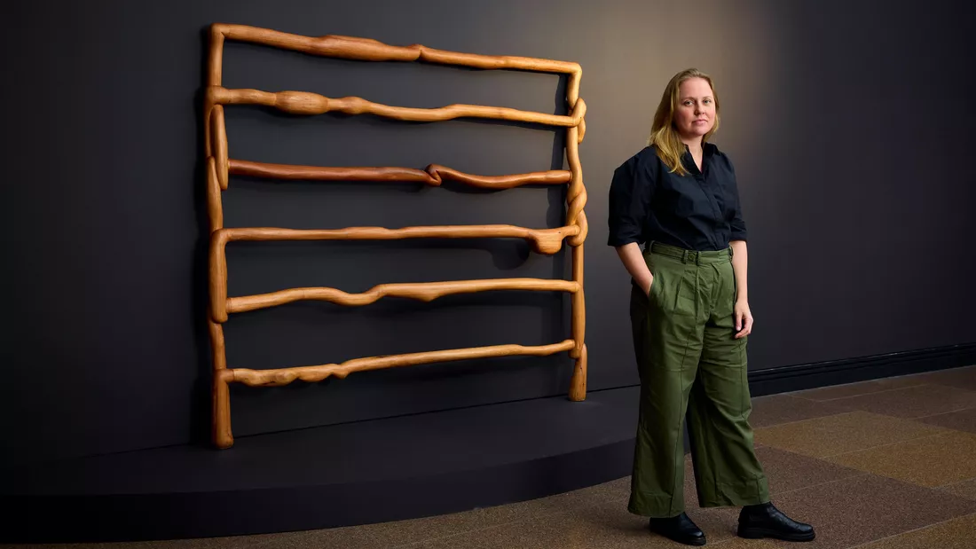 Bolus was inspired by the cattle gates commonly used in Australia. The work began with a series of drawings made by the artist, in which the gate is blended with the form of the intestine. This work is the translation of one of these drawings into sculptural form through timber carving. Reclaimed Australian spotted gum timber posts have been used in this work, with the imperfections of the timber deliberately retained to reveal clues of its previous life. Willing encourages us to consider modern food production and the ways in which it may affect our bodies.