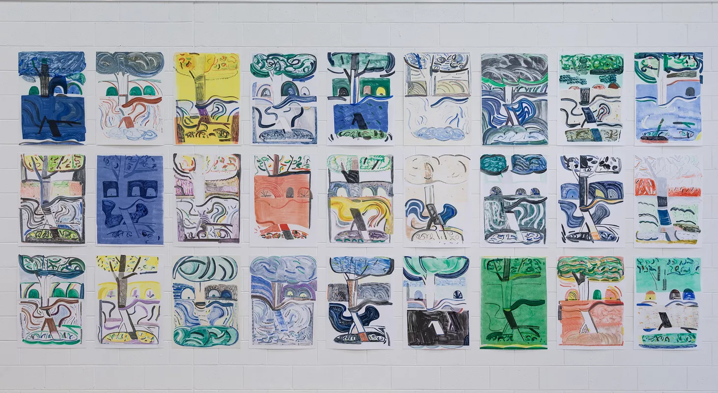 'Shifting Landscapes' is comprised of twenty-one works on paper, showcasing the artist’s exploration of landscape imaging through the process of monotype printing.