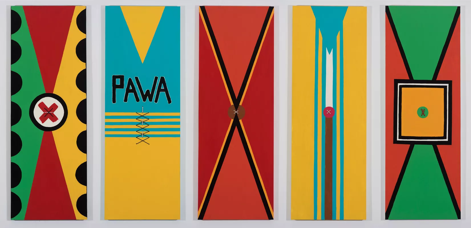 Without access to art materials, Pierre Mukeba’s first drawings and paintings were made on bed sheets with indelible brush pens and pencils.