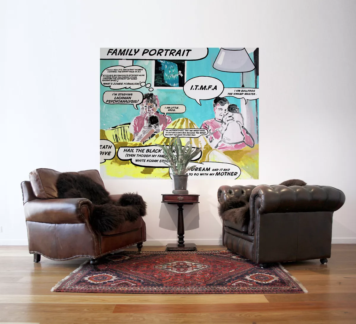 The winning work of art is a double-sided portrait in acrylic paint on plywood. It represents a new way of working for Vincent Namatjira, and a departure from his wall-based paintings on canvas. The title refers to the concept of ‘first contact’ between Indigenous Australians and Captain James Cook. Namatjira uses the double-sided painting as a strategy to explore the reversal of historical narratives of colonisation. Close Contact presents an unexpected conflation of past and present, coloniser and colonised, and the British invasion/discovery of Australia.