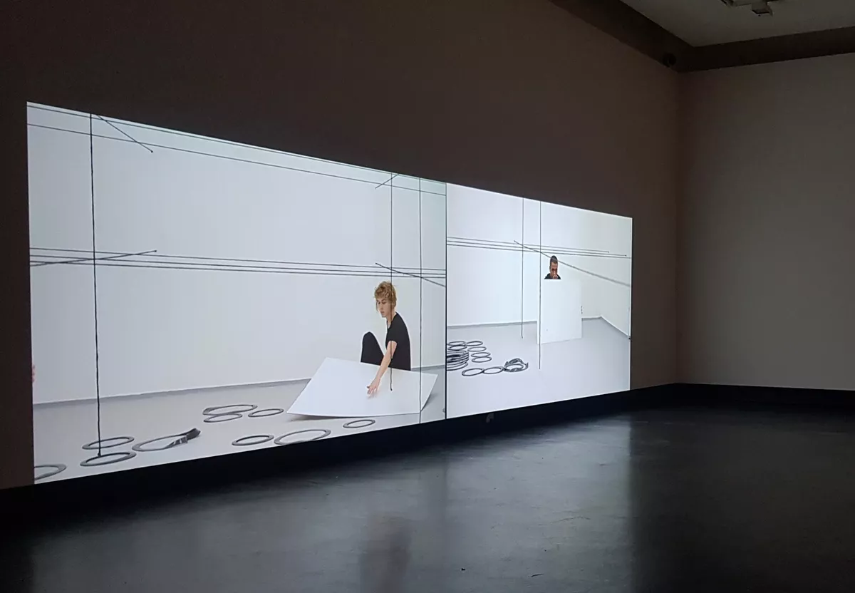'In Context (Actions Becoming)', a 2-channel video projection, considers the individual’s approach to space and the factors that shape this experience.