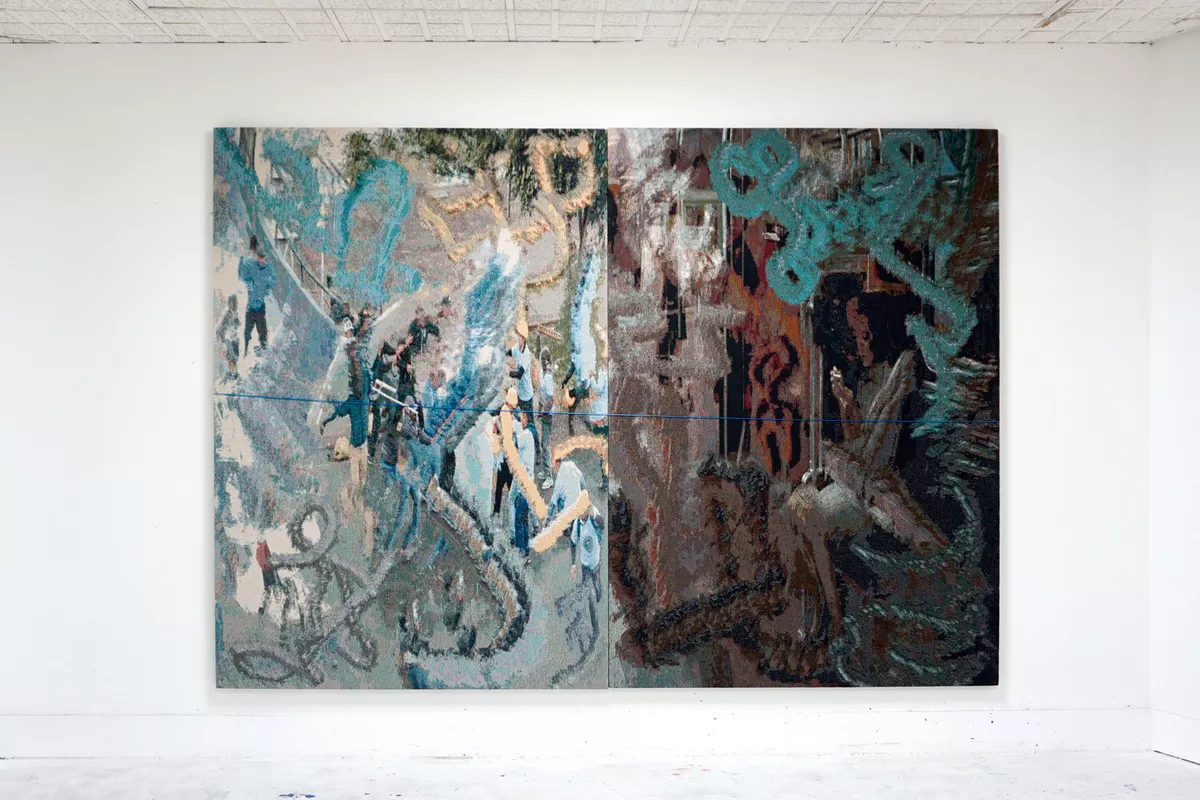 In today’s screen-centric world, a conflation between the private and global occurs. 'CnN5D+YUNpy' considers modern screen technology and the history of mechanical looms.