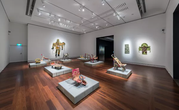 This ambitious exhibition includes trench art from the collection of the Australian War Memorial including those made by Tasmanian Sapper Stanley K. Pearl alongside the compelling work of contemporary artists including Tony Albert, Olga Cironis, Nicholas Folland, Brett Graham, Fiona Hall, Richard Lewer, Alasdair McLuckie, Baden Pailthorpe, Ben Quilty, Sera Waters and Rene Wanuny Kulitja, Judy Ukampari Trigger, Erica Ikungka Shorty, Lucille Armstrong, Mary Katajuku Pan, Janet Inyika, Niningka Lewis and Freda Teamay from the Tjanpi Desert Weavers.