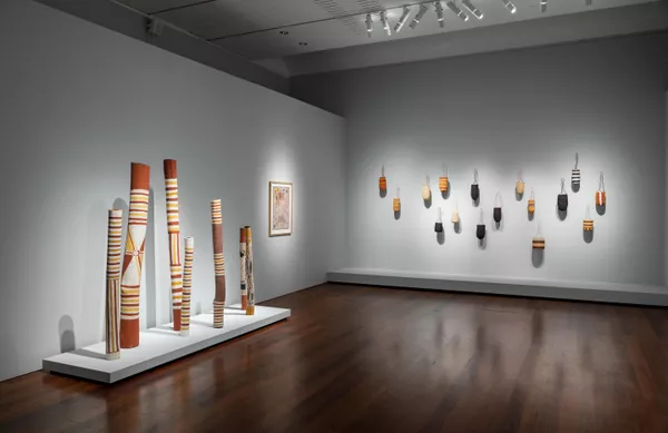 Open Hands pays tribute to the work of senior artists who pass on vital cultural knowledge to younger generations as the future leaders of their Aboriginal and Torres Strait Islander communities. Through the act of making, they channel deep connections to Country and culture as they relate knowledge and expertise, stories and experiences.