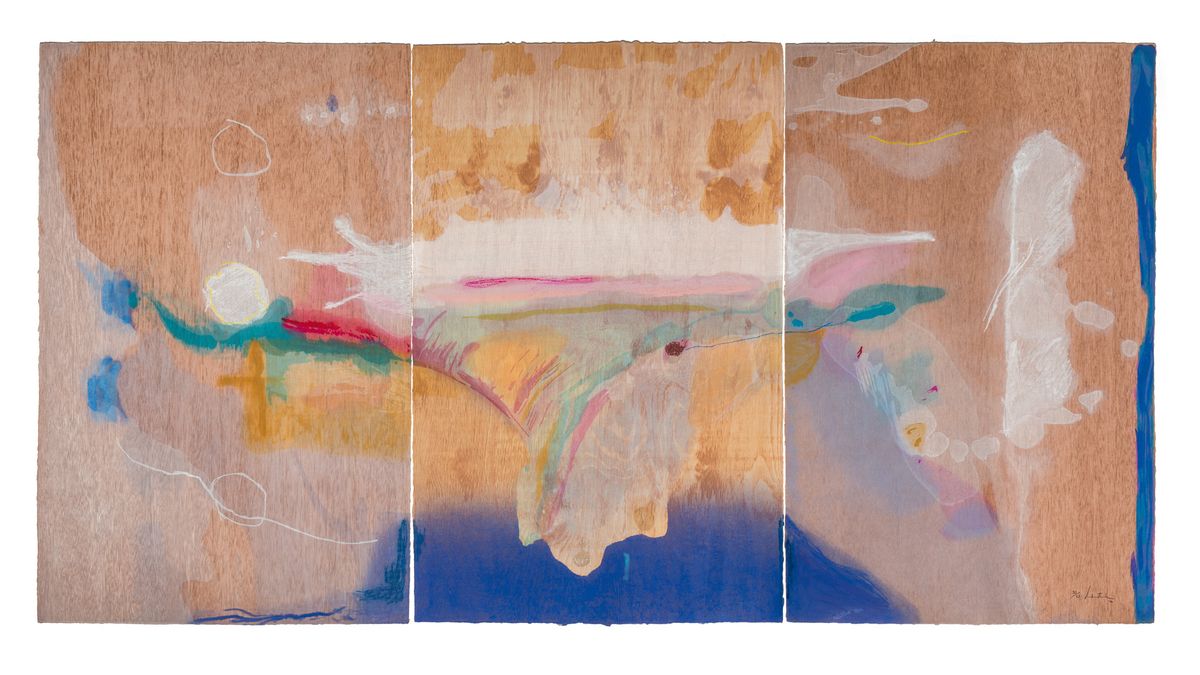 Frankenthaler was inspired to work in the woodcut medium after seeing ukiyo-e prints (‘pictures of the floating world’) while travelling in Japan. Frankenthaler transformed the possibilities of the medium by creating delicate wash affects with the assistance of the American master printer, Kenneth Tyler.