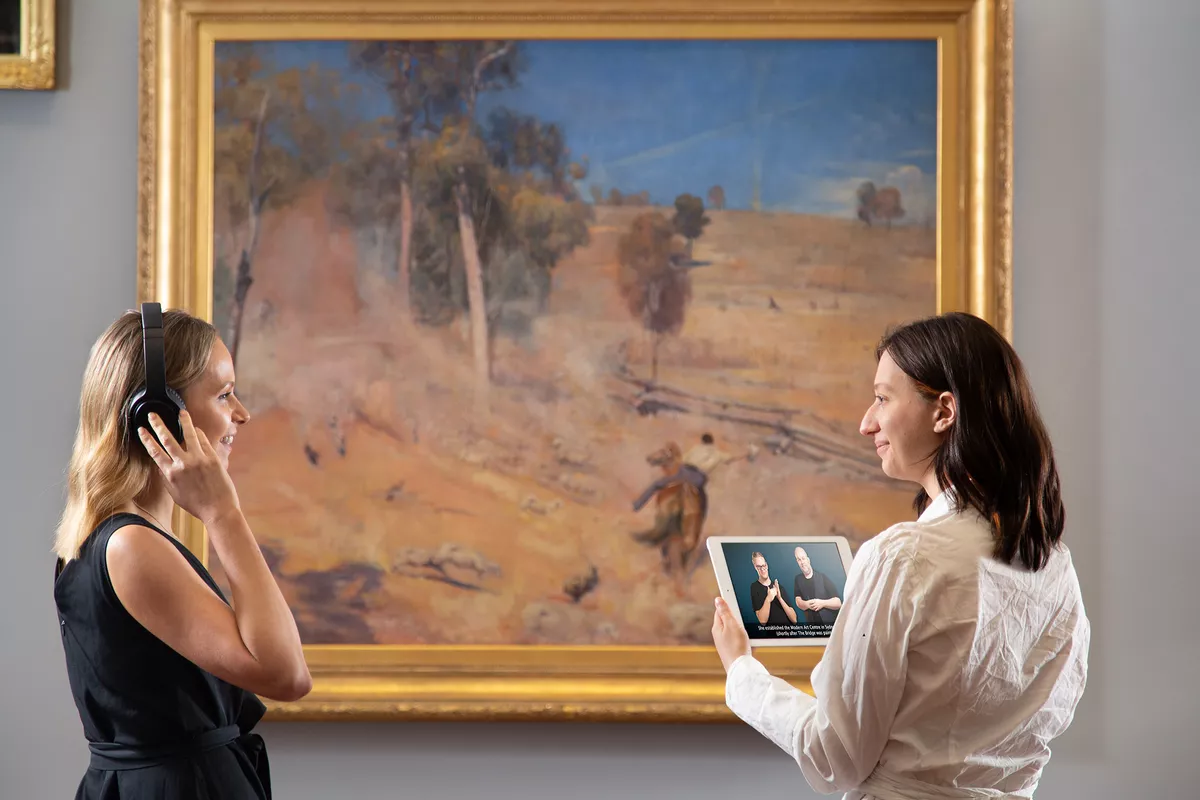 Free Auslan interpreted guided tours of exhibitions and the general collection are presented regularly for deaf and hearing-impaired visitors.
