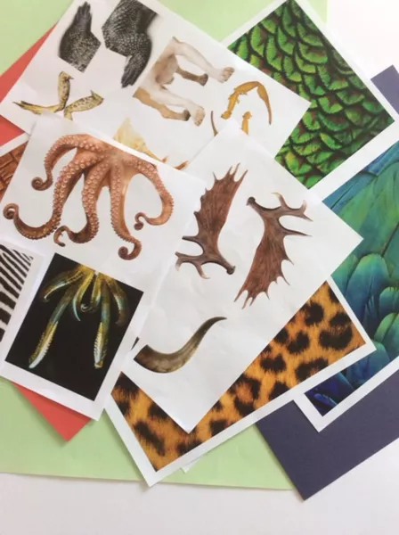 Draw and collage creatures and features to mix, match and mash up monsters.
