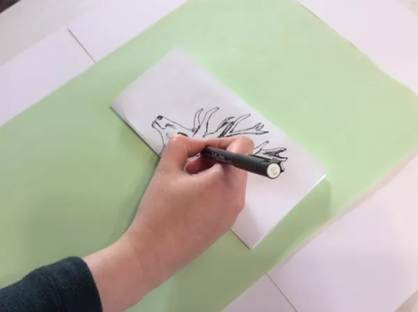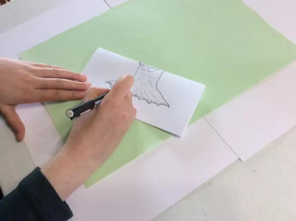 - In the top third, draw the head of an animal, bird, insect or sea creature.
