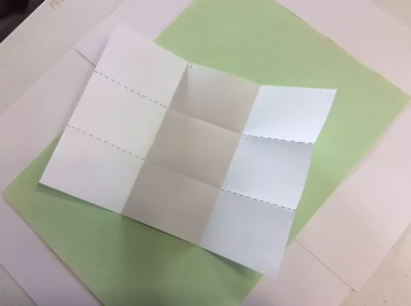 - Fold your A4 paper into thirds, then open up and fold width ways into thirds so that you have 9 rectangular sections.