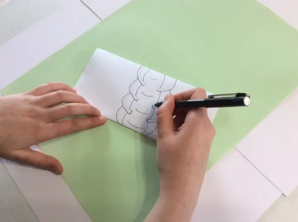 - When you have finished, fold over the top section so that you can’t see what you have just drawn, and in the middle section draw the body of a different creature.