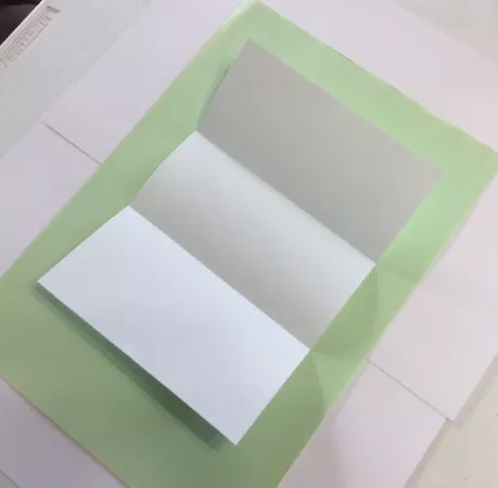 - Using scissors, carefully cut, or ask someone to help you cut, from the edge of paper leaving the middle third intact. As shown in the photo.