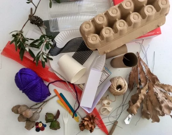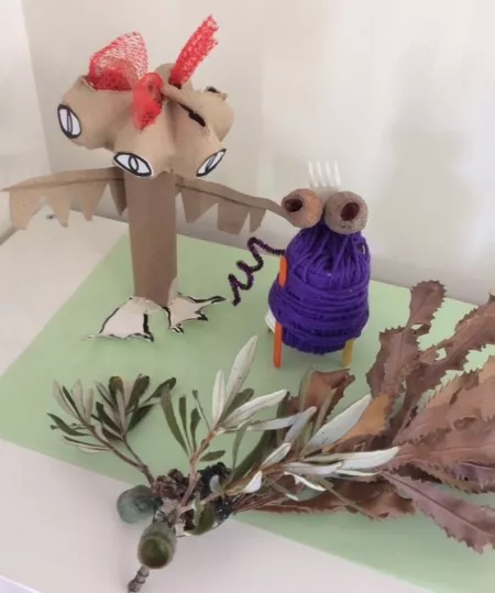 Some Ideas: Cardboard rolls, small cardboard boxes, old wrapping paper, wool, string, bendy wire, interesting sticks, leaves, seedpods, from your backyard, or the local park, plastic packaging, pipe cleaners, plasticine. - Look at what you have collected. Play around with ways of putting the pieces together to make a monster.