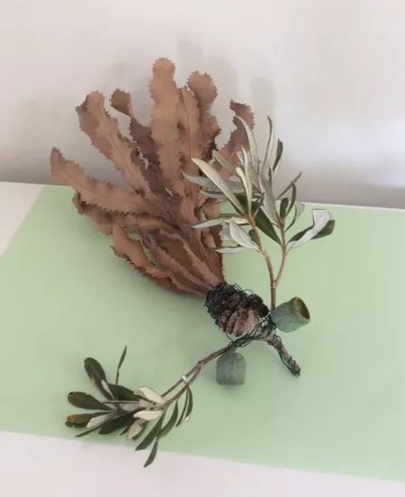 - To make my third monster, I collected some gumnuts, and some interesting leaves from my garden and wired them together with the