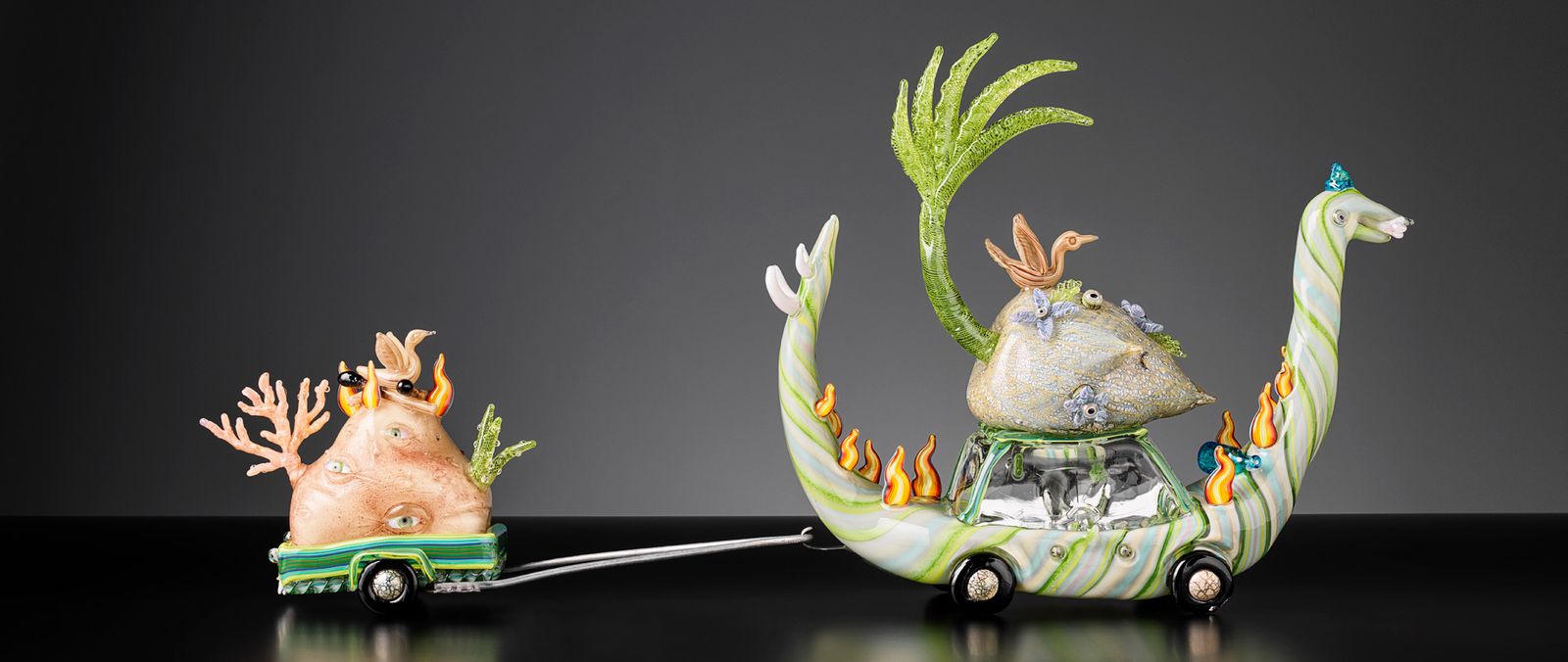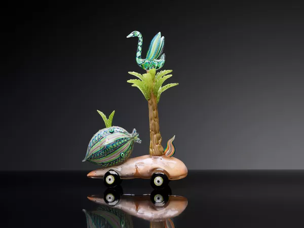 At 10 years old, Tom Moore’s mind was blown when he saw a book of Margaret Dodd's ceramic Holdens. Margaret’s inventive interpretations of cars continues to inspire Tom's own work. Tom enjoys combining animal and plant forms with wheels to create strange cars.