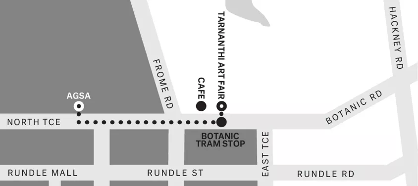 Find the Tarnanthi Art Fair at Lot Fourteen opposite the Adelaide Botanic Tram Stop on North Terrace.