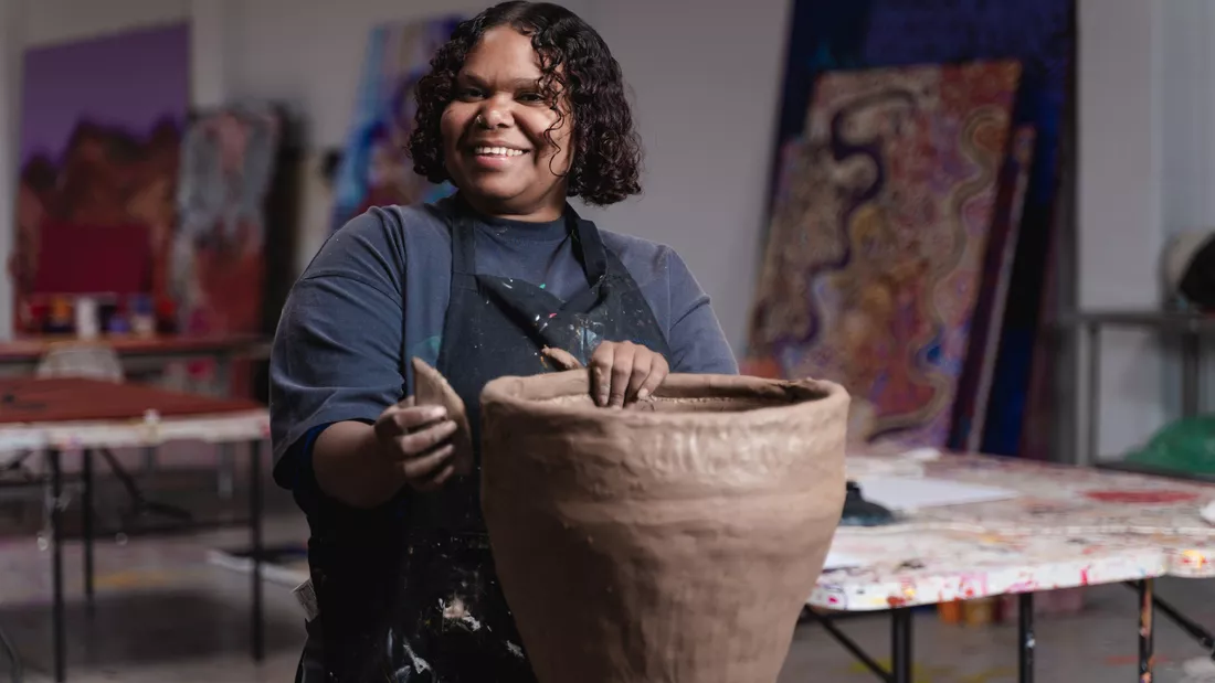 Generation Next brings together up-and-coming First Nations artists from the APY Lands, regional South Australia and Adelaide to showcase the vast talent and diversity of First Nations art, culture, identity and storytelling among emerging artists. The breadth of artists included in the exhibition foregrounds the importance of spaces anchored in culture and held by First Nations peoples.