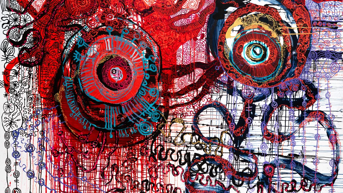 Purkarari: Slow down features major new works by Zaachariaha Fielding alongside collaborative paintings created with senior artists working with APY Art Centre Collective, Adelaide. Rooted in the Pitjantjatjara word ‘purkarari’, meaning a deep calm through work, Fielding explores the meditative act of creation in partnership with celebrated artists Sandra Pumani, Yaritji Tingila Young, Nyunmiti Burton, Jennifer Ingkatji, Yaritji Heffernan, Margaret Richards and Megan Lyons. Together their work speaks to the restorative nature of painting – where movement, expression and shared creativity quiet the mind and strengthen cultural connections.