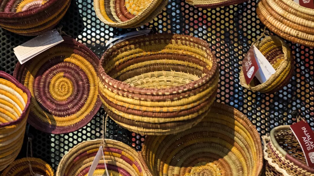 Injalak Arts has more than 200 active members who are artists from Gunbalanya and surrounding outstations, making artworks inspired by their culture and local environment. Their works include bark paintings and acrylic paintings on canvas, carved and painted wooden works, limited-edition prints, fibre art and jewellery woven from natural materials, screenprinted textiles and homewares.