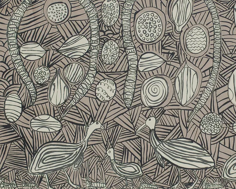 Nagula Jarndu, meaning ‘Saltwater Woman’ in the Yawuru language, is a women’s art centre based in Broome. Our artists draw inspiration from the colours and natural beauty of the West Kimberley as well as imagery that is culturally significant. The women specialise in block printing on textiles and explore layering of images to create one-of-a-kind effects.